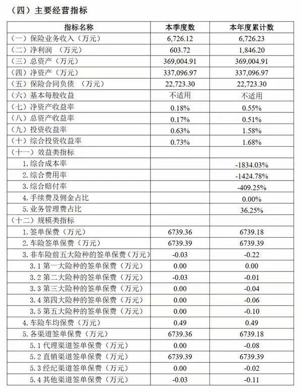 对此,其官方在报告中做出解释,“因公司于2024年5月恢复业务经营,缺少历史业务转回,导致本年度已赚保费为负值,进而导致综合成本率、综合费用率、综合赔付率为负值。随着经营周期的逐步进展,本年新签保单会逐步实现满期,指标将逐渐转变为正值。”