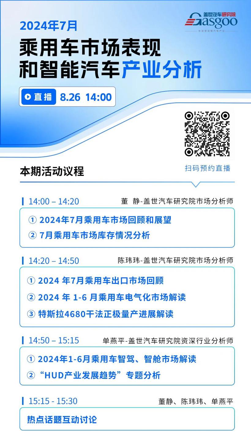 在此背景下,盖世汽车研究院8月26日将举办线上沙龙,聚焦新能源汽车市场的最新变革与技术创新,探讨市场趋势、企业策略及未来发展方向。